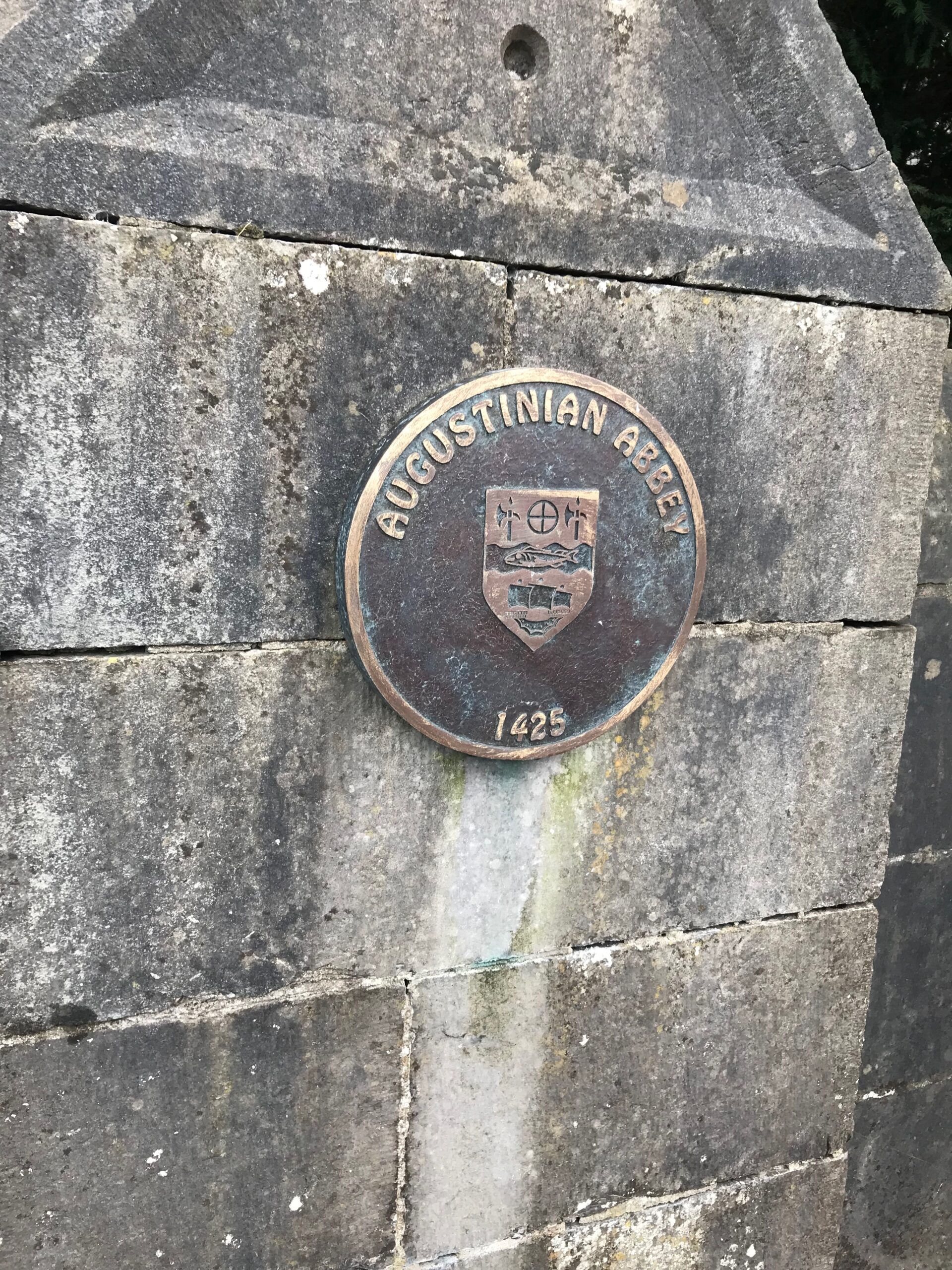A bronze plaque mounted at the site bears the inscription “Augustinian Abbey 1425” alongside the Ballina coat of arms, and the location features as stop number 14 on the Ballina Historic Town trail, with an information board detailing the abbey’s history in both Irish and English.
