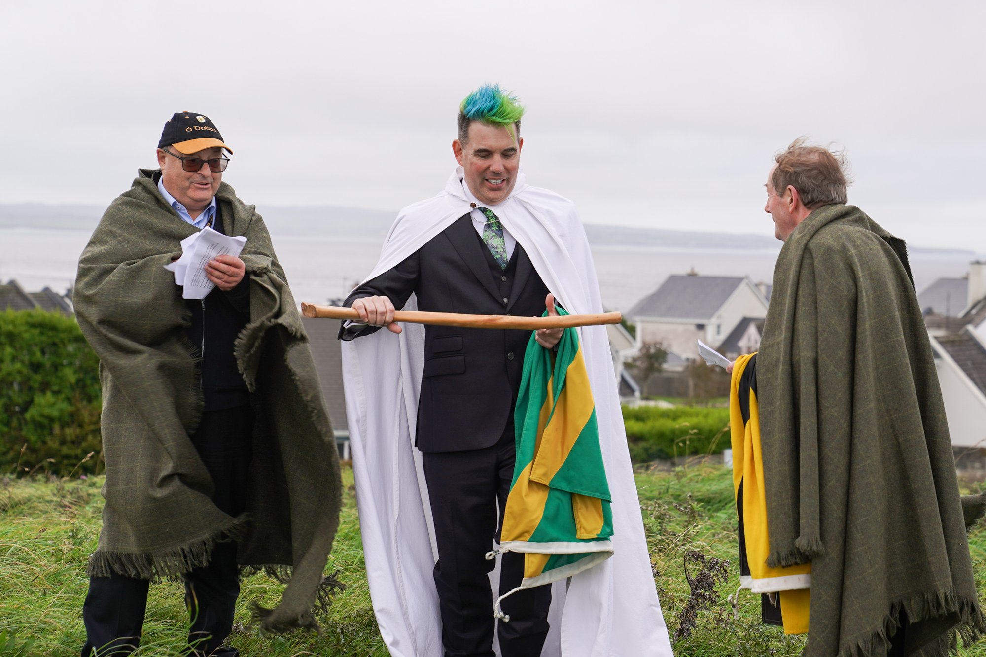 In July 1990 the first Clan Rally opened in Enniscrone. A rowan sapling was planted at the castle — a deliberate echo of the Rowan of Dubhros, the sacred tree at the heart of the oldest clan legend. That small ceremony began the tradition this page records: every two or three years since, O'Dubhdas have gathered in the family's ancient territory to walk the sites, hear the history, and — from 2000 onwards — to inaugurate a new chieftain on the old inauguration mound.